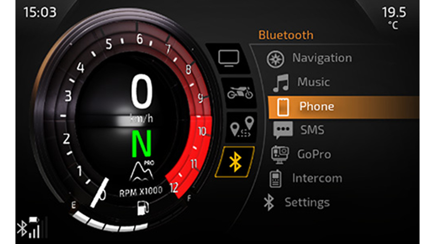 Это 7-дюймовый TFT-дисплей, выполненный по современной технологии оптической вклейки, минимизирующей солнечные блики и обеспечивающей отличную видимость в любых условиях. В стоке панель оснащена модулем Bluetooth и программным обеспечением My Triumph, которая передает на экран указания навигации, а также управляет музыкой, телефоном и функционалом камеры Go-Pro.