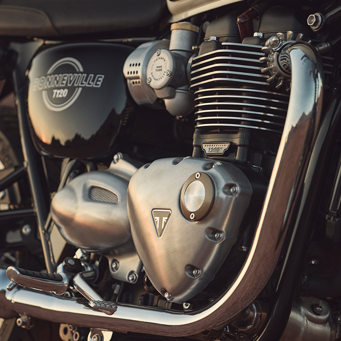 Новый 1200-кубовый двигатель Bonneville впечатляет не только характеристиками, но и внешним исполнением. Его формы получились выразительными и монументальными, при этом прослеживается его преемственность с легендарным двигателем Bonneville 60-х годов. Важно было сохранить эталонный силуэт классического мотора, наделив его суперсовременными характеристиками.
